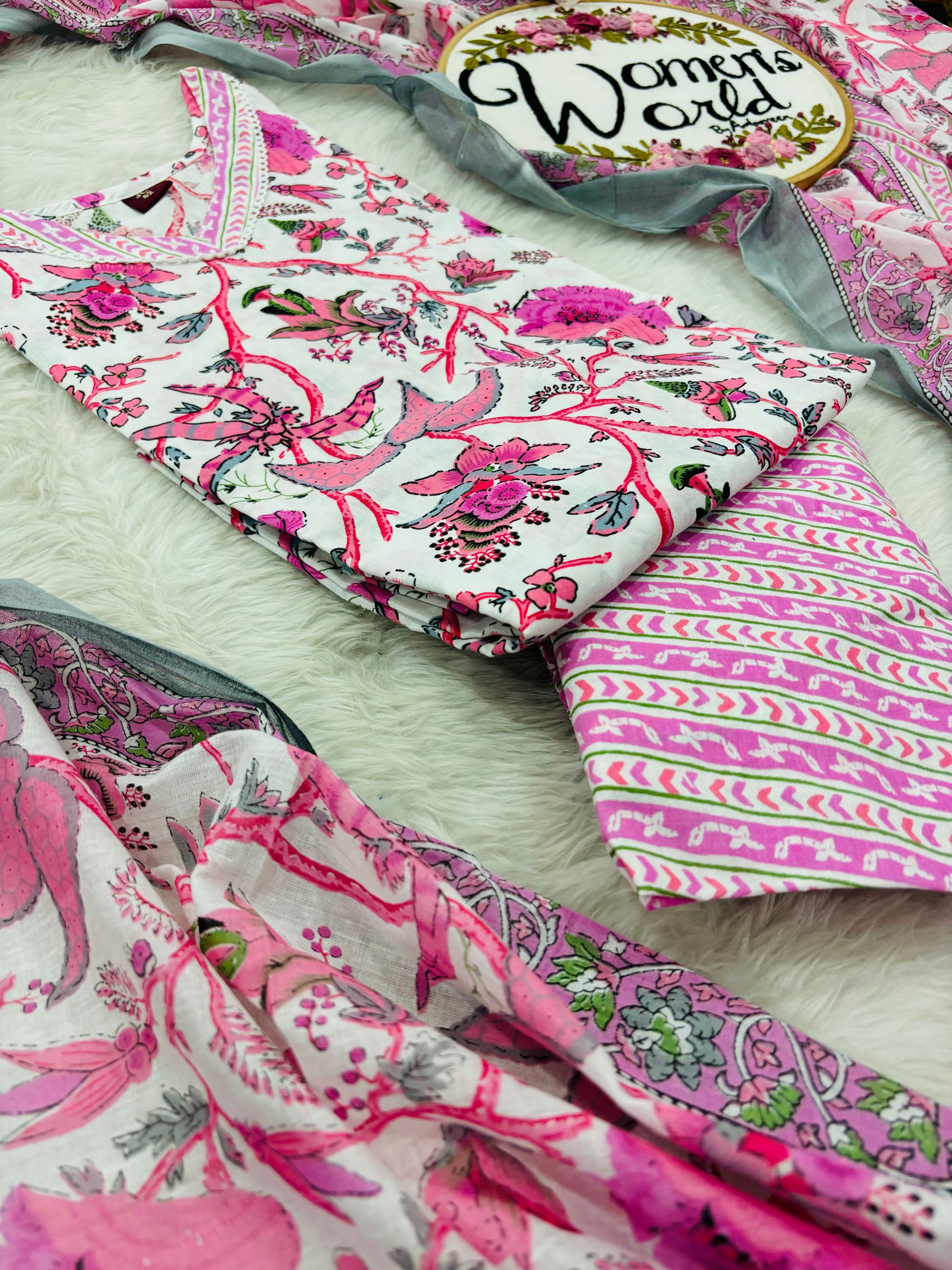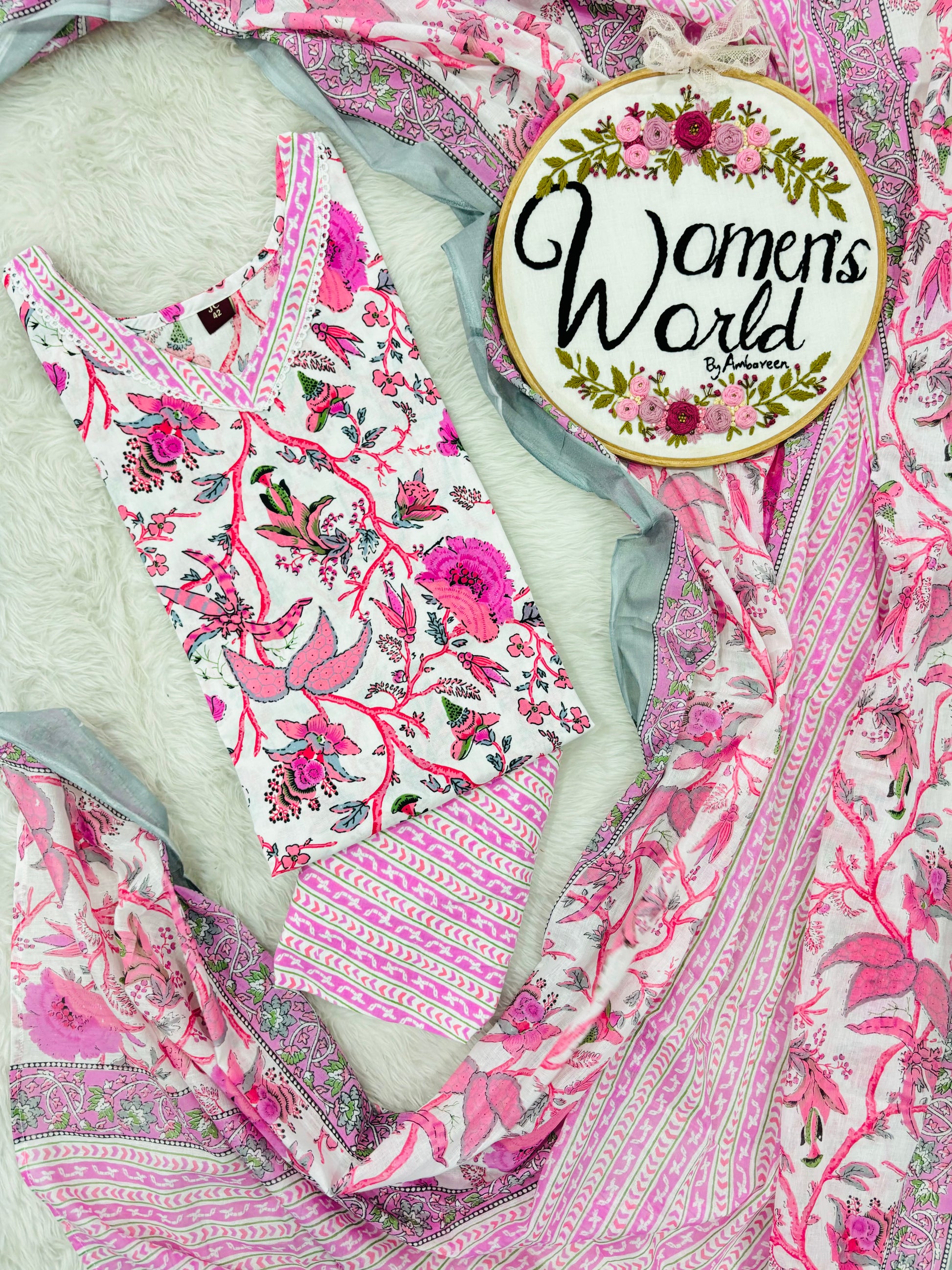 This Pure Cotton V Neck Petal Rose Salwar with Dupatta ensures comfort and style with its casual design and soft fabric. The delicate pink color adds a touch of femininity, making it perfect for any casual occasion. Stay comfortable and trendy with this must-have piece for any wardrobe.