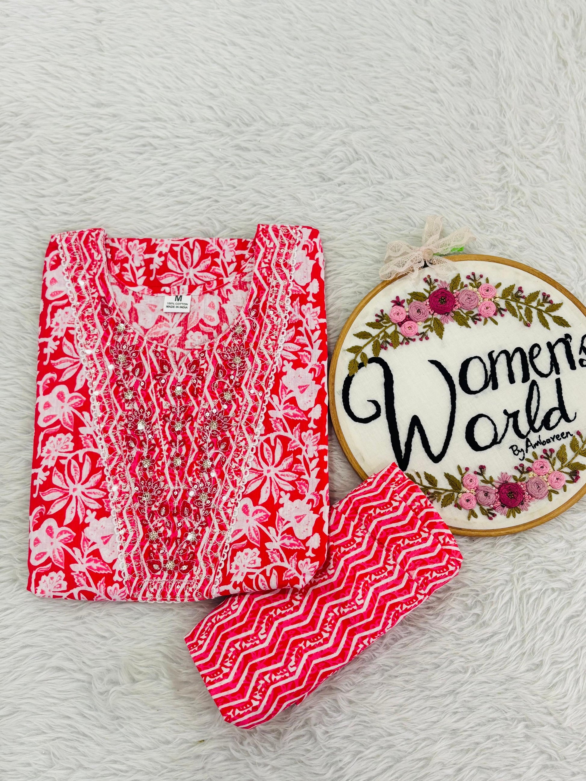 Discover the perfect officewear with our embroidered cotton kurti pant set. Made from high-quality cotton, this set boasts intricate embroidery for a professional yet stylish look. Elevate your office attire and stay comfortable all day long.