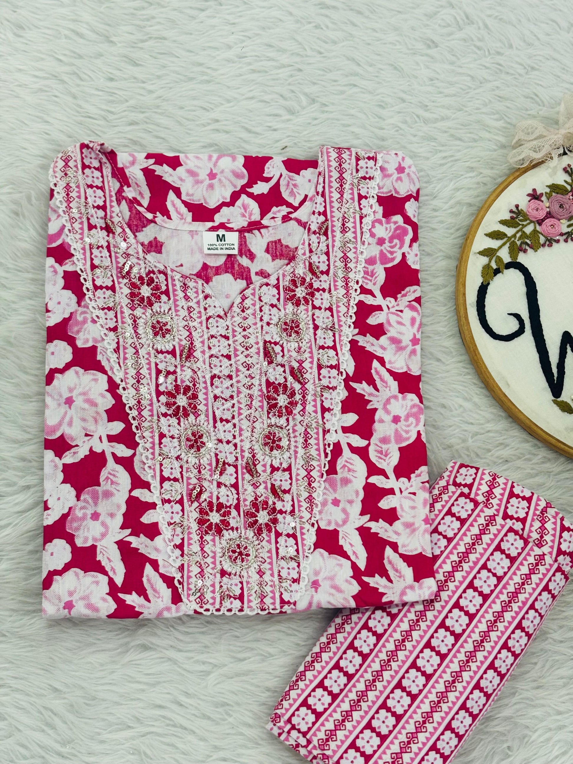 Discover the perfect officewear with our embroidered cotton kurti pant set. Made from high-quality cotton, this set boasts intricate embroidery for a professional yet stylish look. Elevate your office attire and stay comfortable all day long.