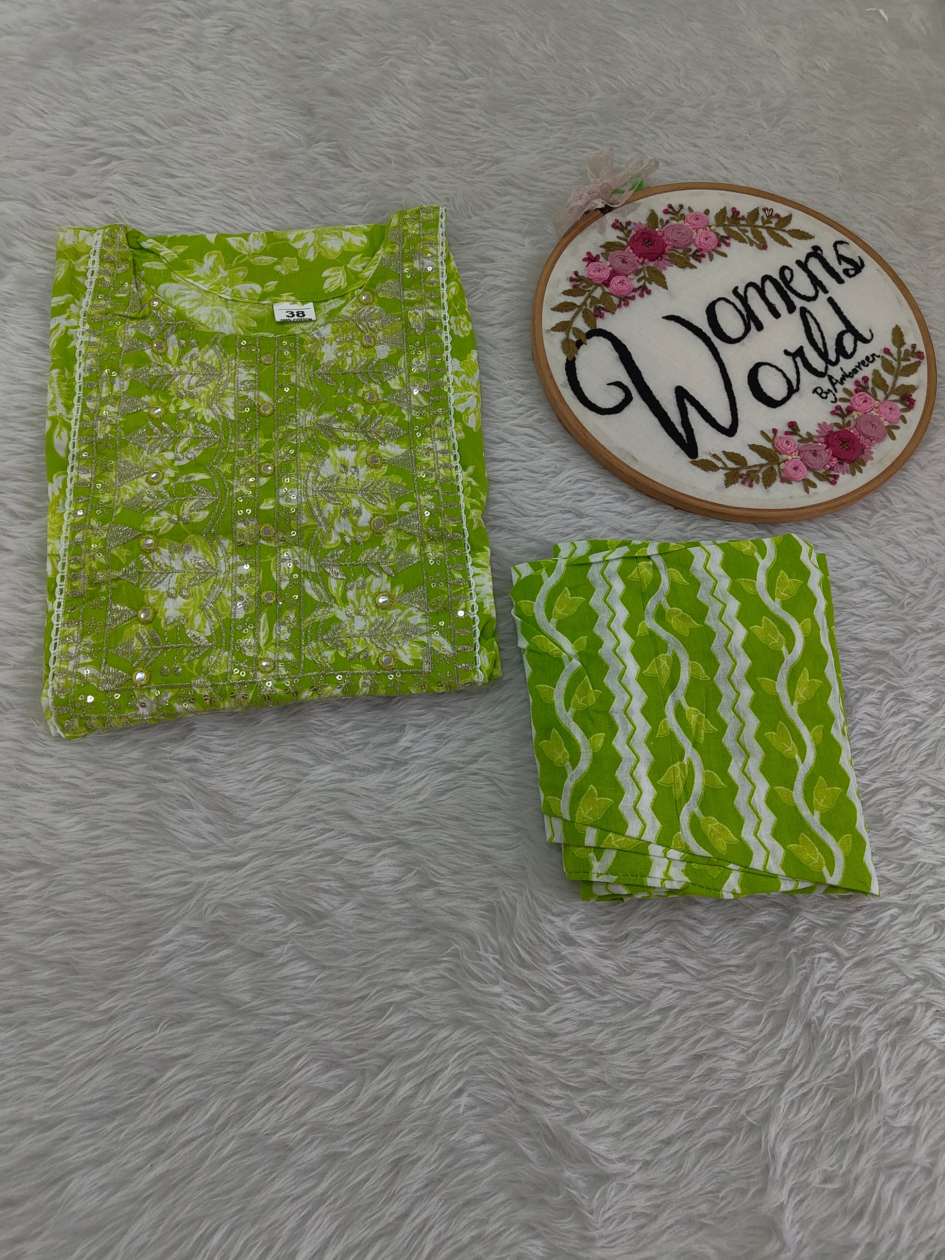 Discover the perfect officewear with our embroidered cotton kurti pant set. Made from high-quality cotton, this set boasts intricate embroidery for a professional yet stylish look. Elevate your office attire and stay comfortable all day long.