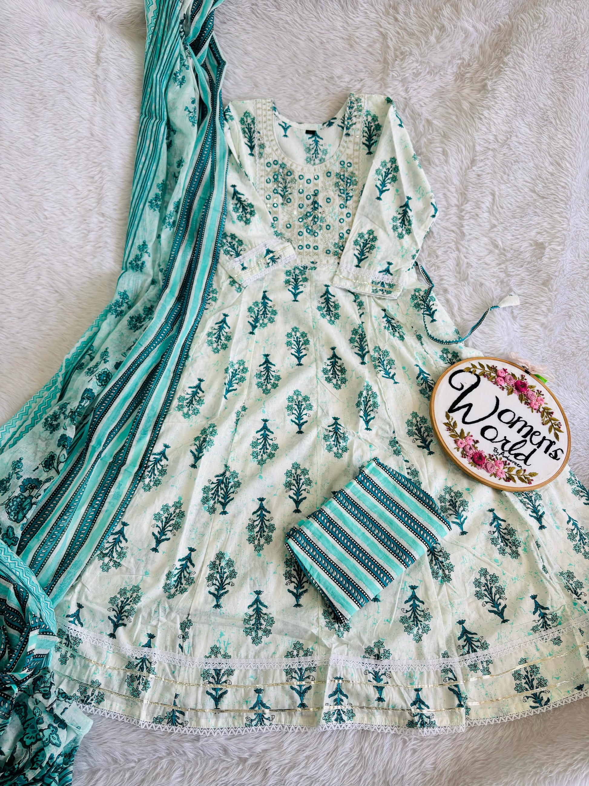 Discover the luxurious comfort of our Premium Soft Anarkali 3 pc suit. Made from soft cotton, it's perfect for staying cool in the summer months while providing a professional look for your office wardrobe. Elevate your style with this must-have piece from our officewear summer collection.